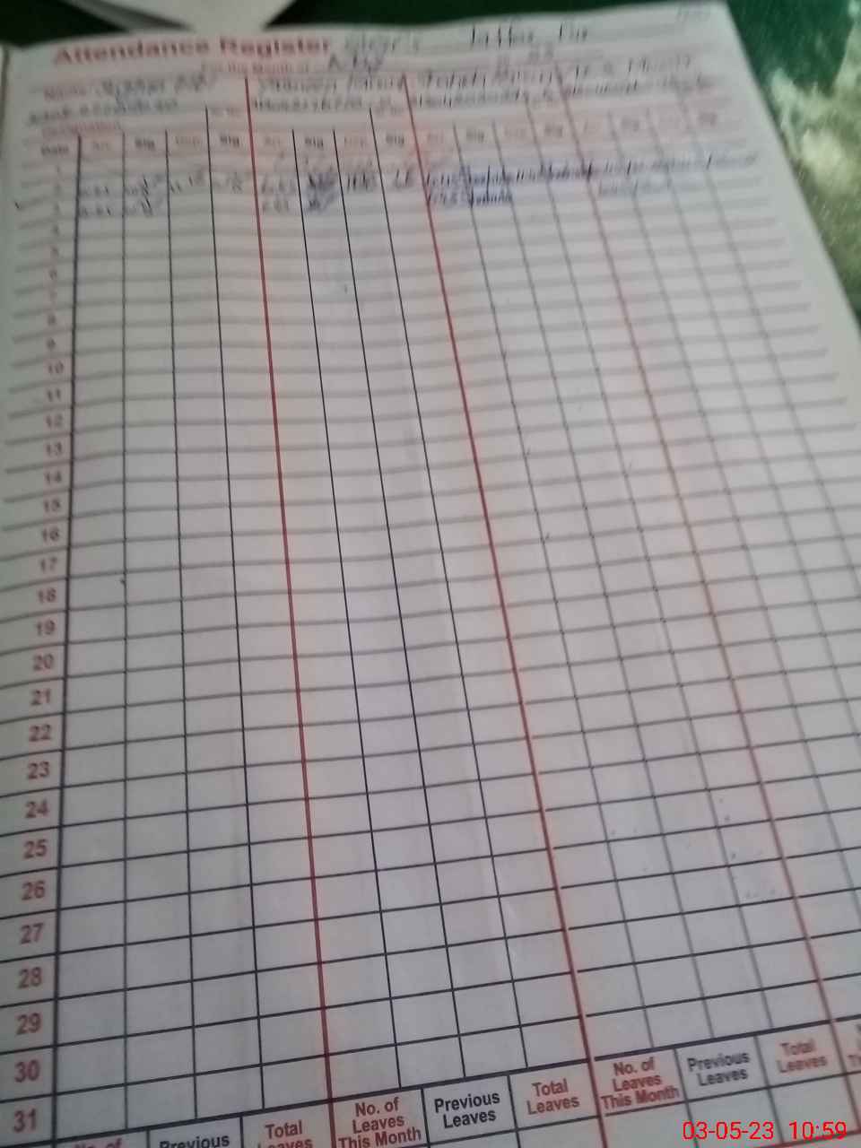 | CNIC | Full Name | Designation | R/C | Absence During Last Calender Month |