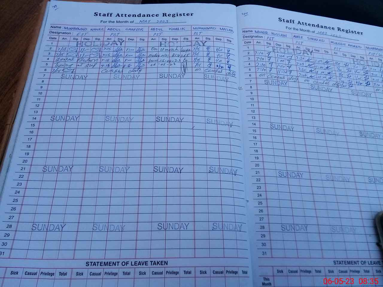 | 35**** | Mu**** Kh**** | Regular | 0 | 30 | 0 | 0 | 0 | 0 | 0 | 0 | 0 | Exam Duty | |