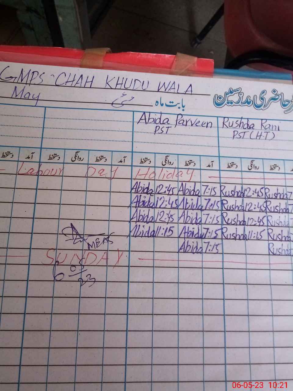 | CNIC | Full Name | Designation | R/C | Absence During Last Calender Month |