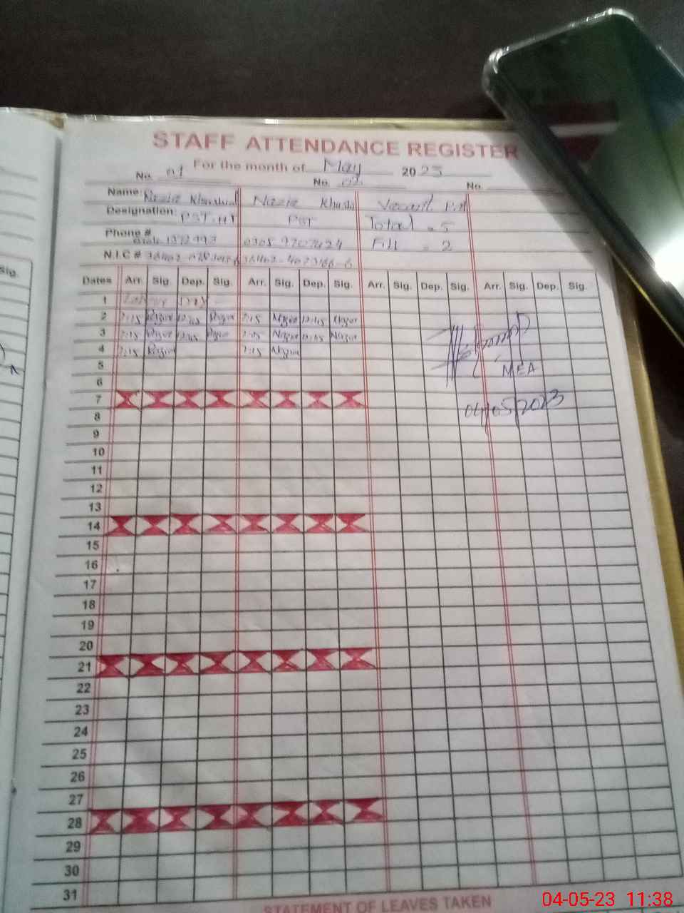 | Name: Na**** Kh**** Designation: (School Headmaster's/Headmistress's) PST Phone/Cell Number: 03**** |