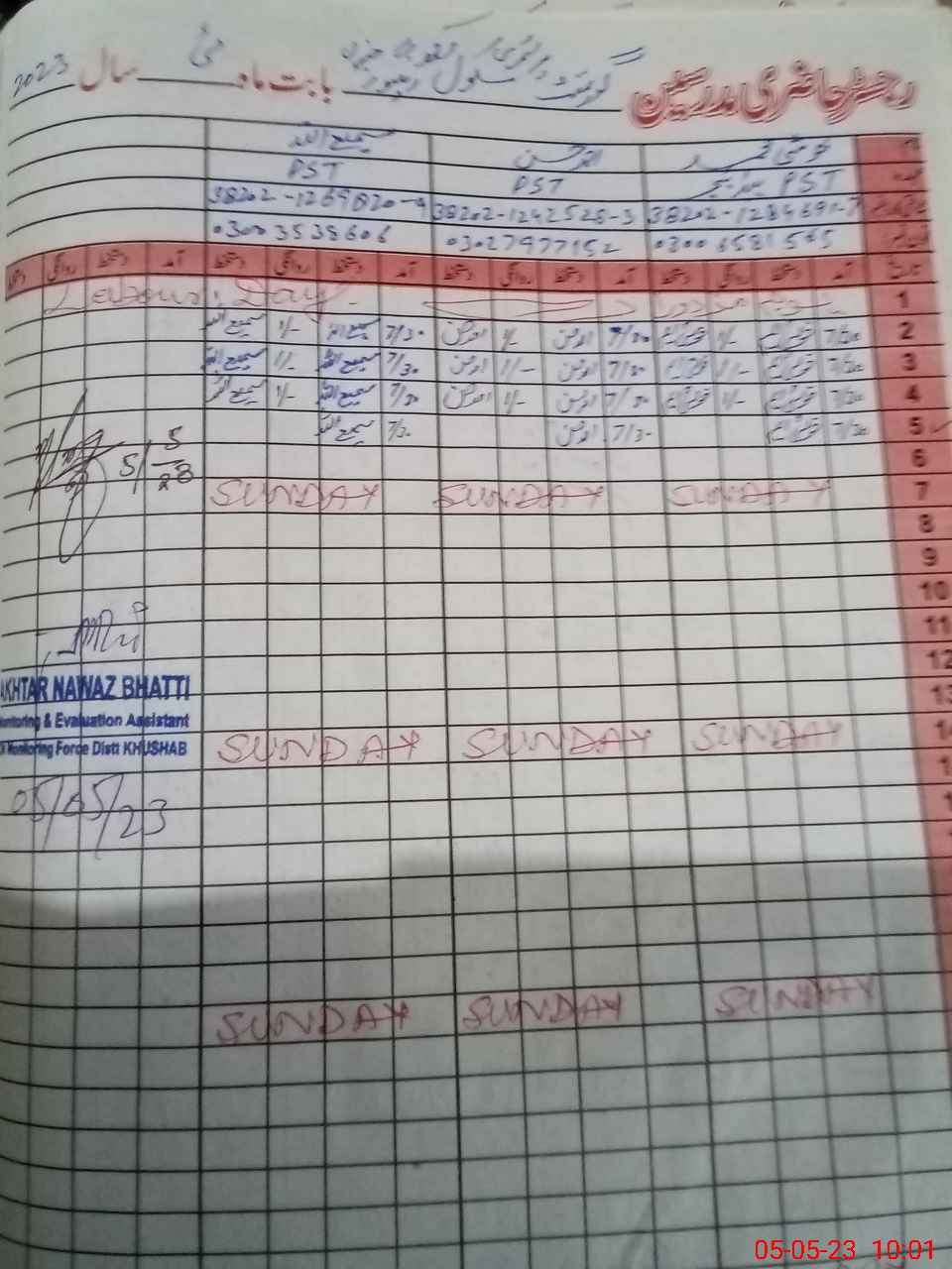| Name: KH**** MU**** Designation: (School Headmaster's/Headmistress's) PST Phone/Cell Number: 03**** |
