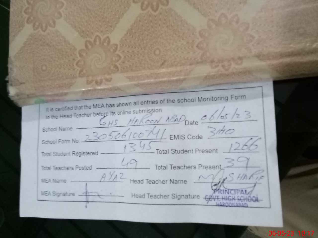 | EMIS Code: 31140003 | Name of School: GHS HAROONABAD | |||