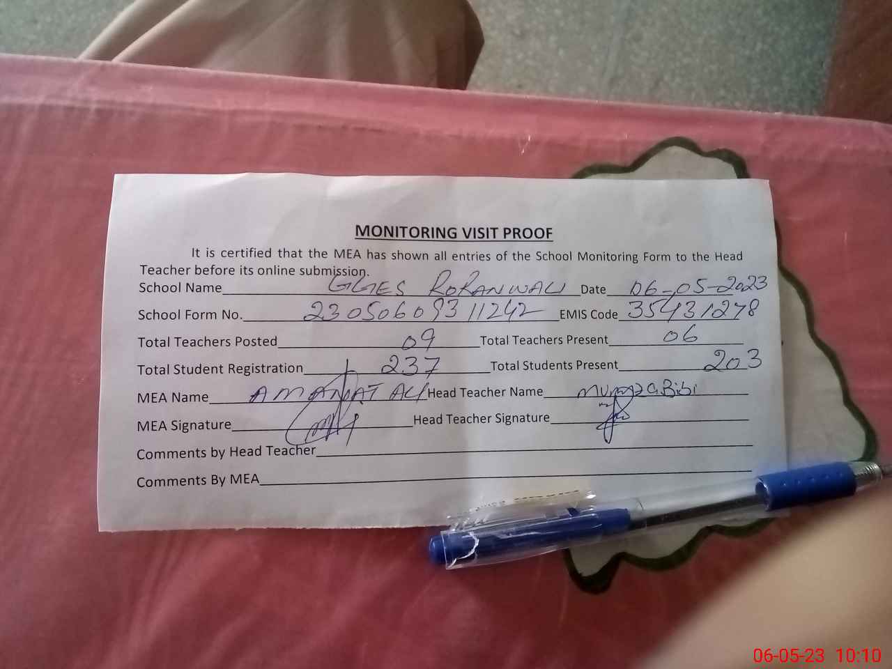 | EMIS Code: 35431278 | Name of School: GGES RORAN WALI | |||