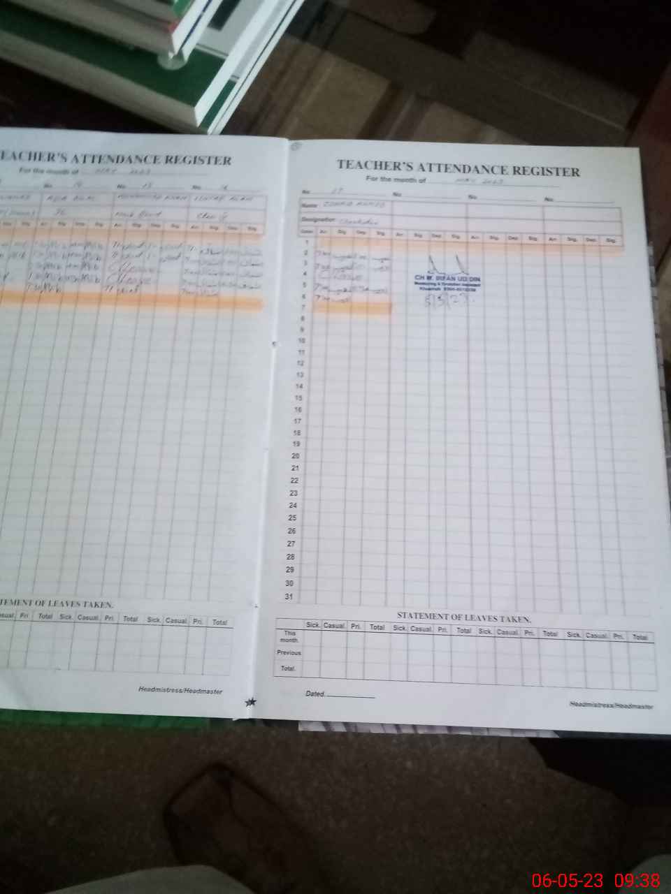 | Attendance Register | Head Teacher | MEA with School | Visit Proof |
