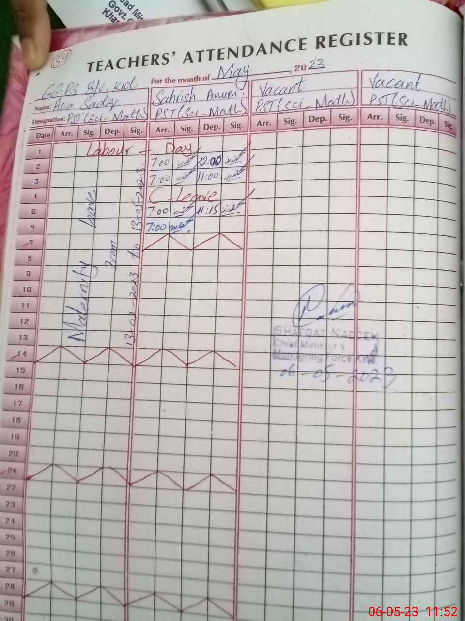 | 35**** | As**** Sa**** | PST | Regular | 0 | 0 | 0 | 0 | 0 | 0 | 0 | 0 | 0 | Maternity |