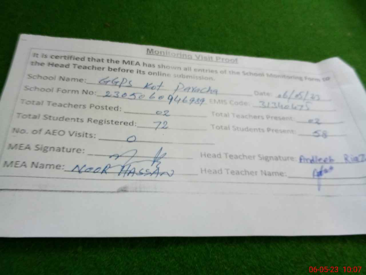| EMIS Code: 31340475 | Name of School: GGPS KOT PRAACHA | |||