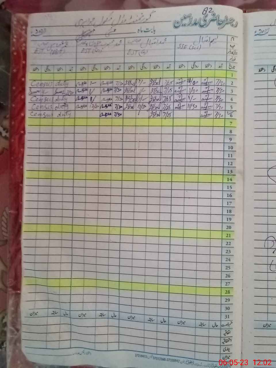 | CNIC | Full Name | Designation | R/C | Absence During Last Calender Month |