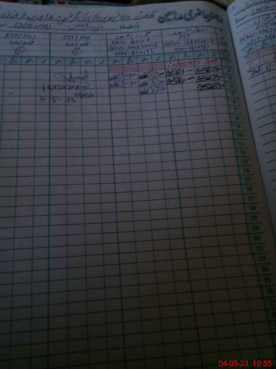 | CNIC | Full Name | Designation | R/C | Absence During Last Calender Month |