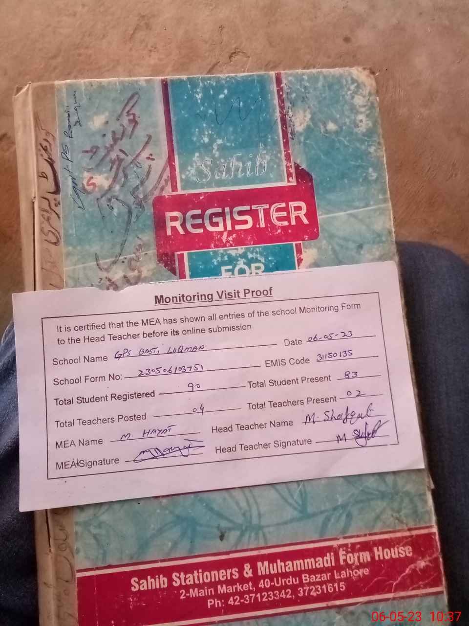 | Attendance Register | Head Teacher | MEA with School | Visit Proof |