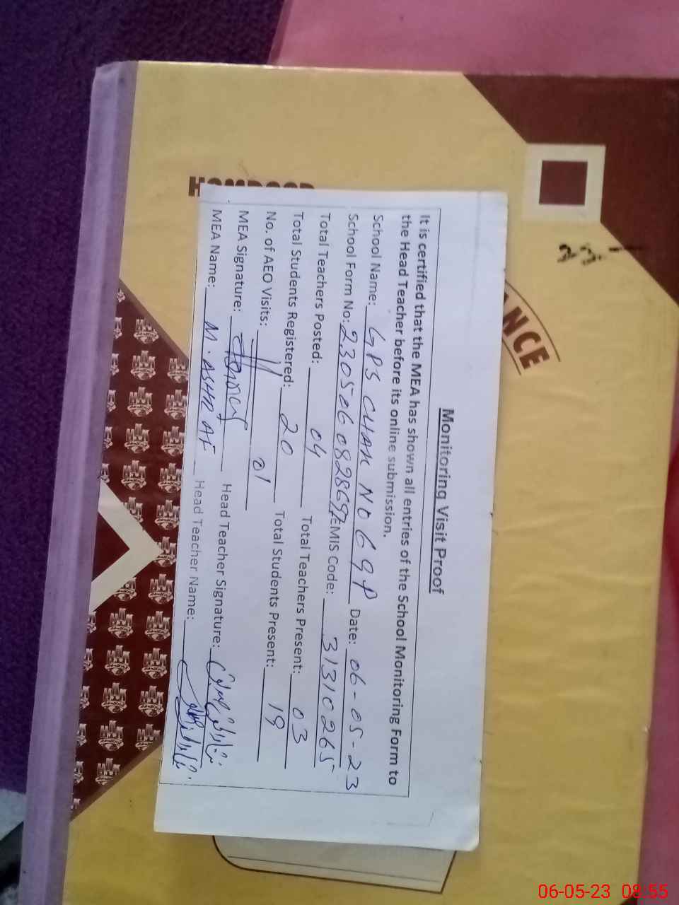 | EMIS Code: 31310265 | Name of School: GPS CHAK NO 69 P | |||
