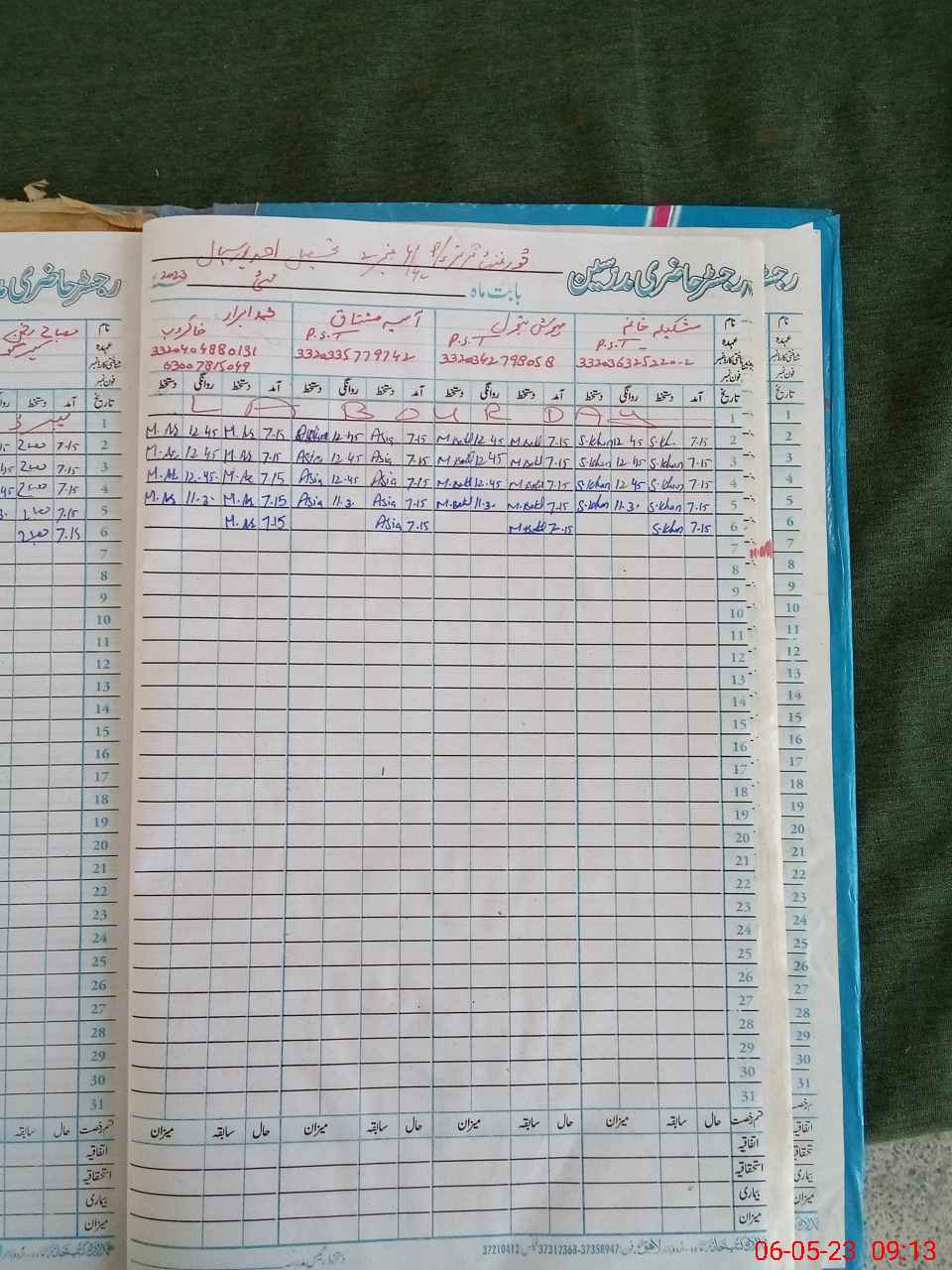 | CNIC | Full Name | Designation | R/C | Absence During Last Calender Month |