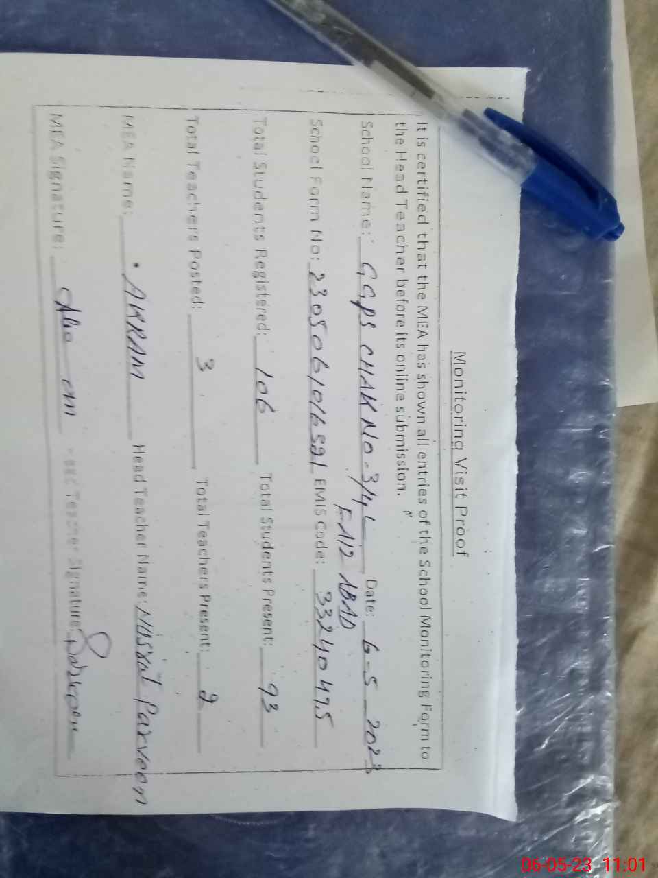 | EMIS Code: 33240475 | Name of School: GGPS CHAK NO 3/4L FAIZ ABAD | |||
