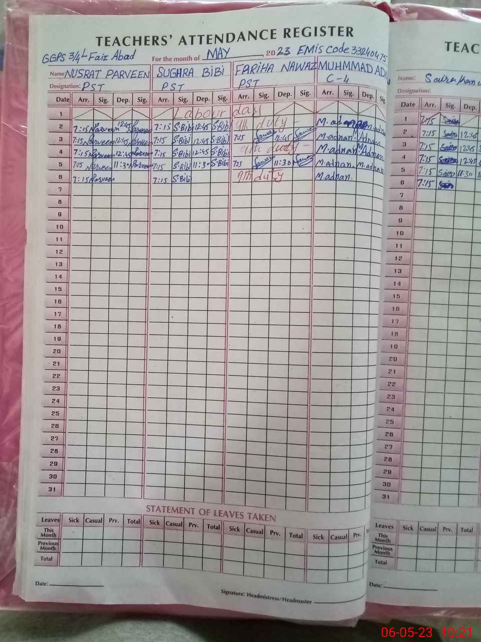 | 33**** | Fa**** Na**** | PST | Regular | 0 | 10 | 0 | 0 | 0 | 0 | 0 | 0 | 0 | Exam Duty |