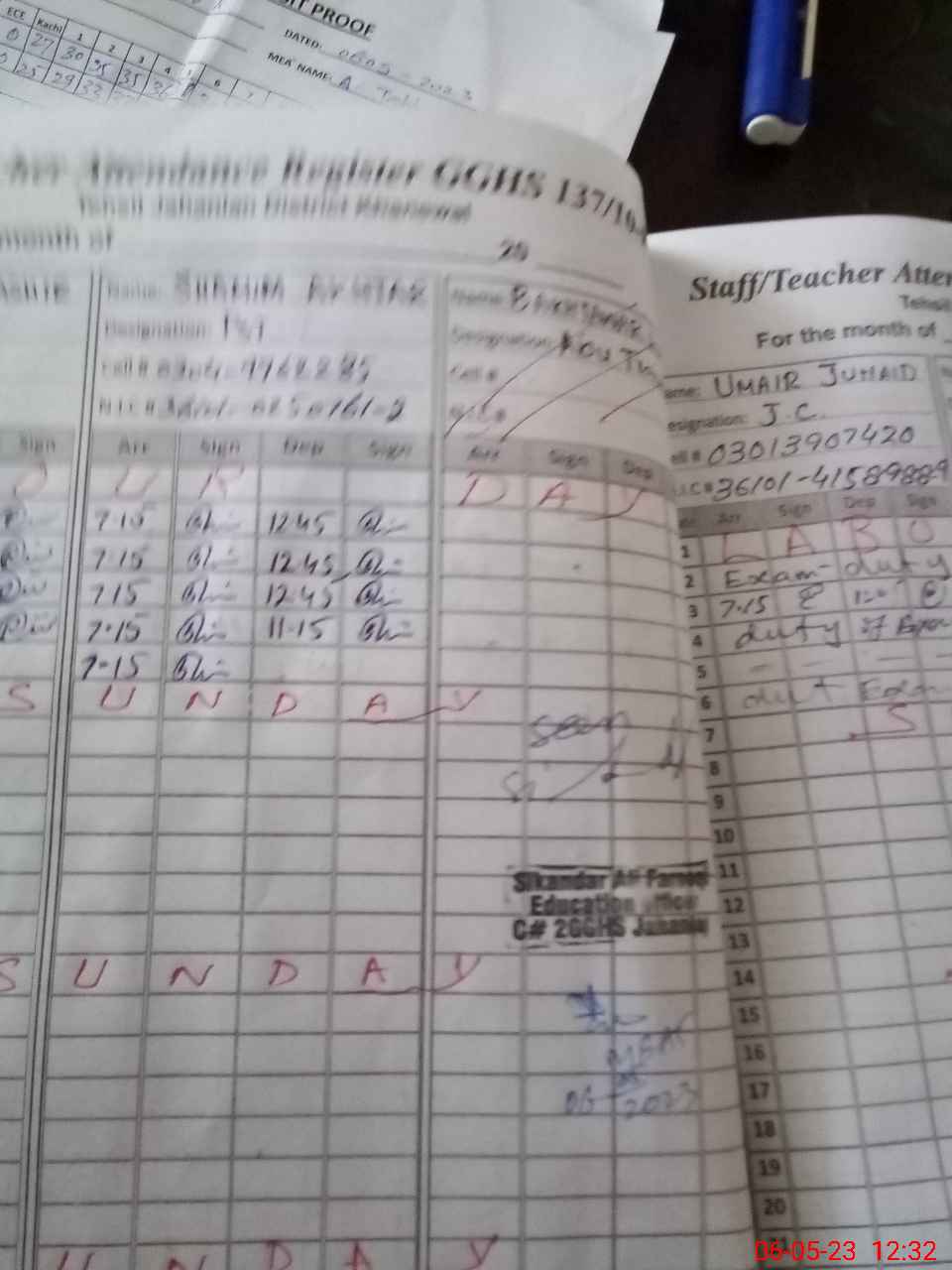 | 36**** | Fa**** Na**** | PST | Regular | 0 | 0 | 0 | 0 | 0 | 0 | 0 | 0 | 0 | Exam Duty |