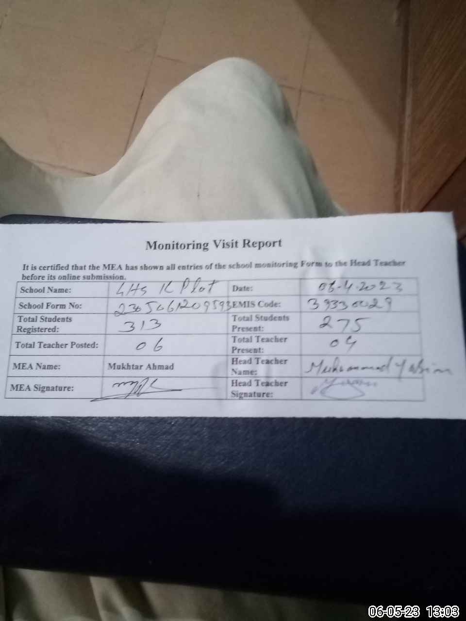 | EMIS Code: 39330029 | Name of School: GHS K PLOT | |||