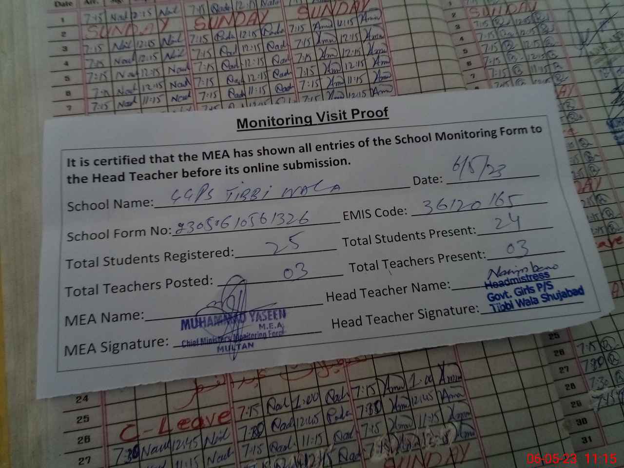 | EMIS Code: 36120165 | Name of School: GGPS TIBBI WALA SHUJABAD | |||