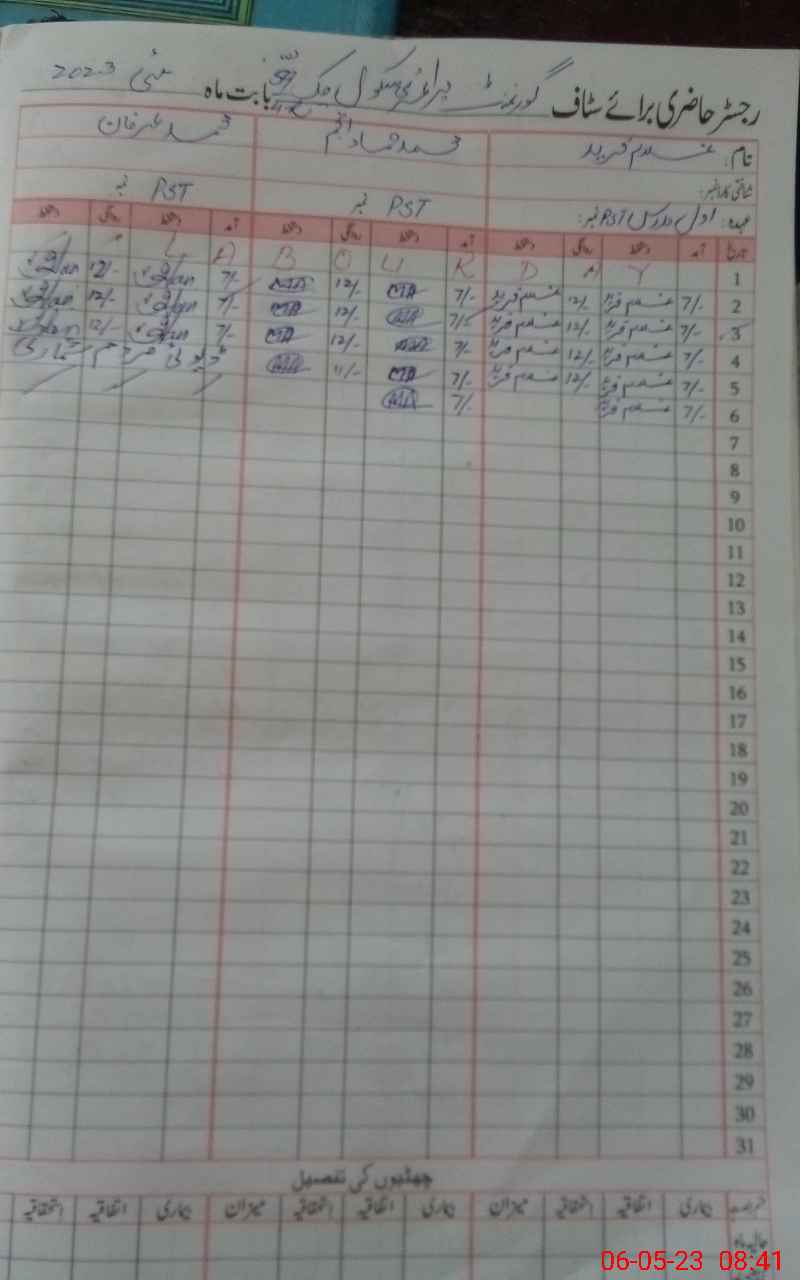 | Name: Mu**** Ha**** Designation: (School Headmaster's/Headmistress's) PST Phone/Cell Number: 03**** |