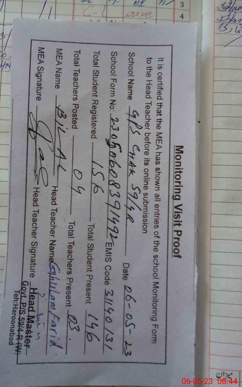 | EMIS Code: 31140131 | Name of School: GPS CHAK NO 59/4-R W | |||