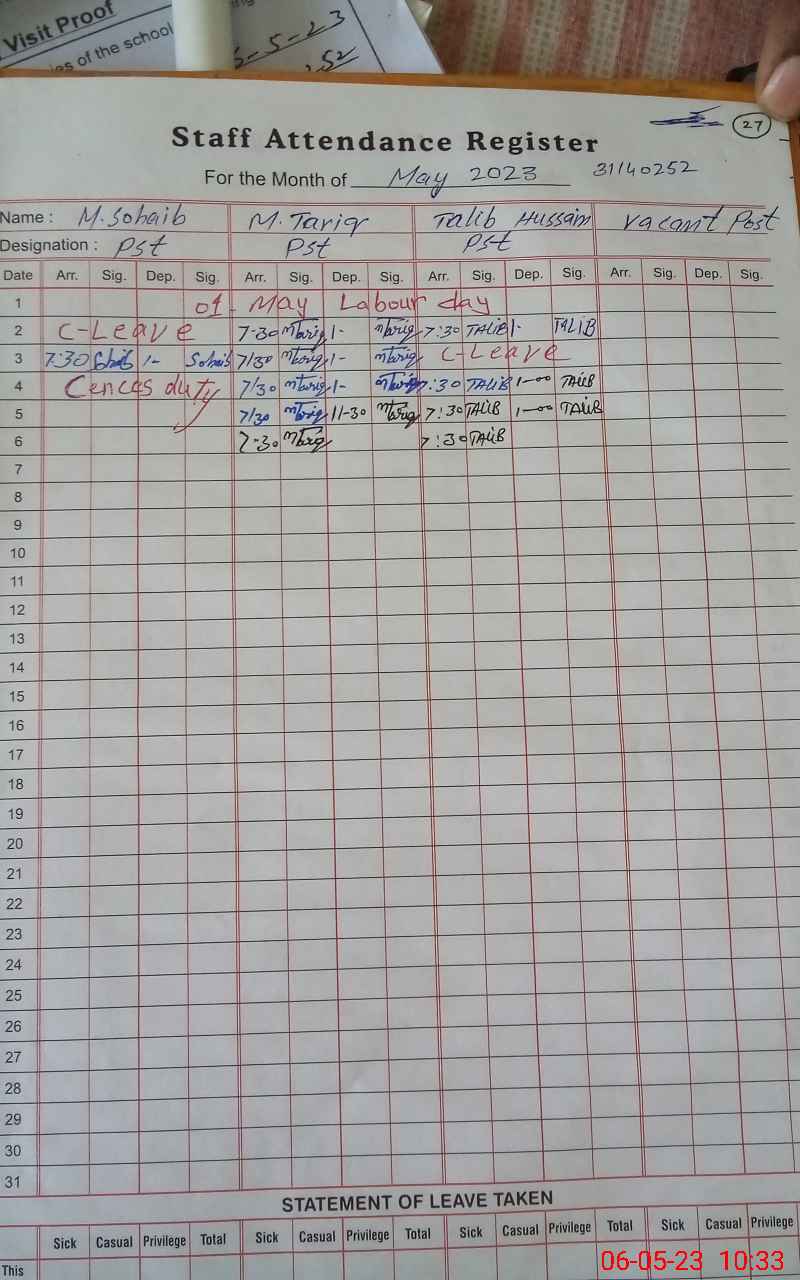 | Attendance Register | Head Teacher | MEA with School | Visit Proof |
