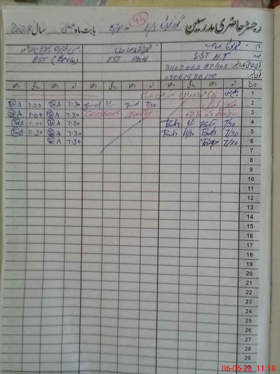 | Name: Ma**** Me**** Designation: (School Headmaster's/Headmistress's) EST Sce Phone/Cell Number: 03**** |
