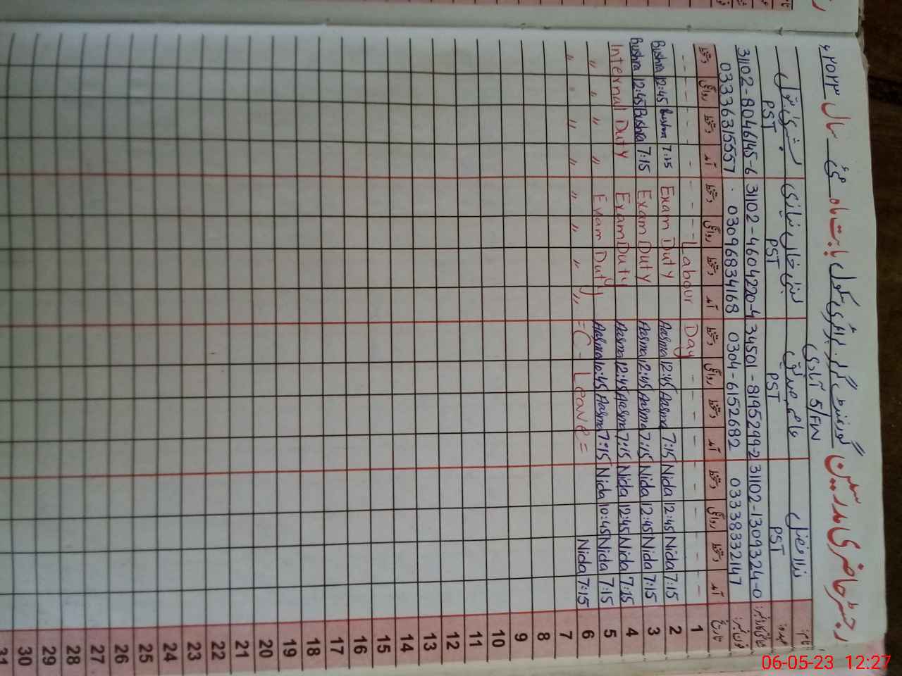 | Name: As**** Si**** Designation: (School Headmaster's/Headmistress's) PST Phone/Cell Number: 03**** |