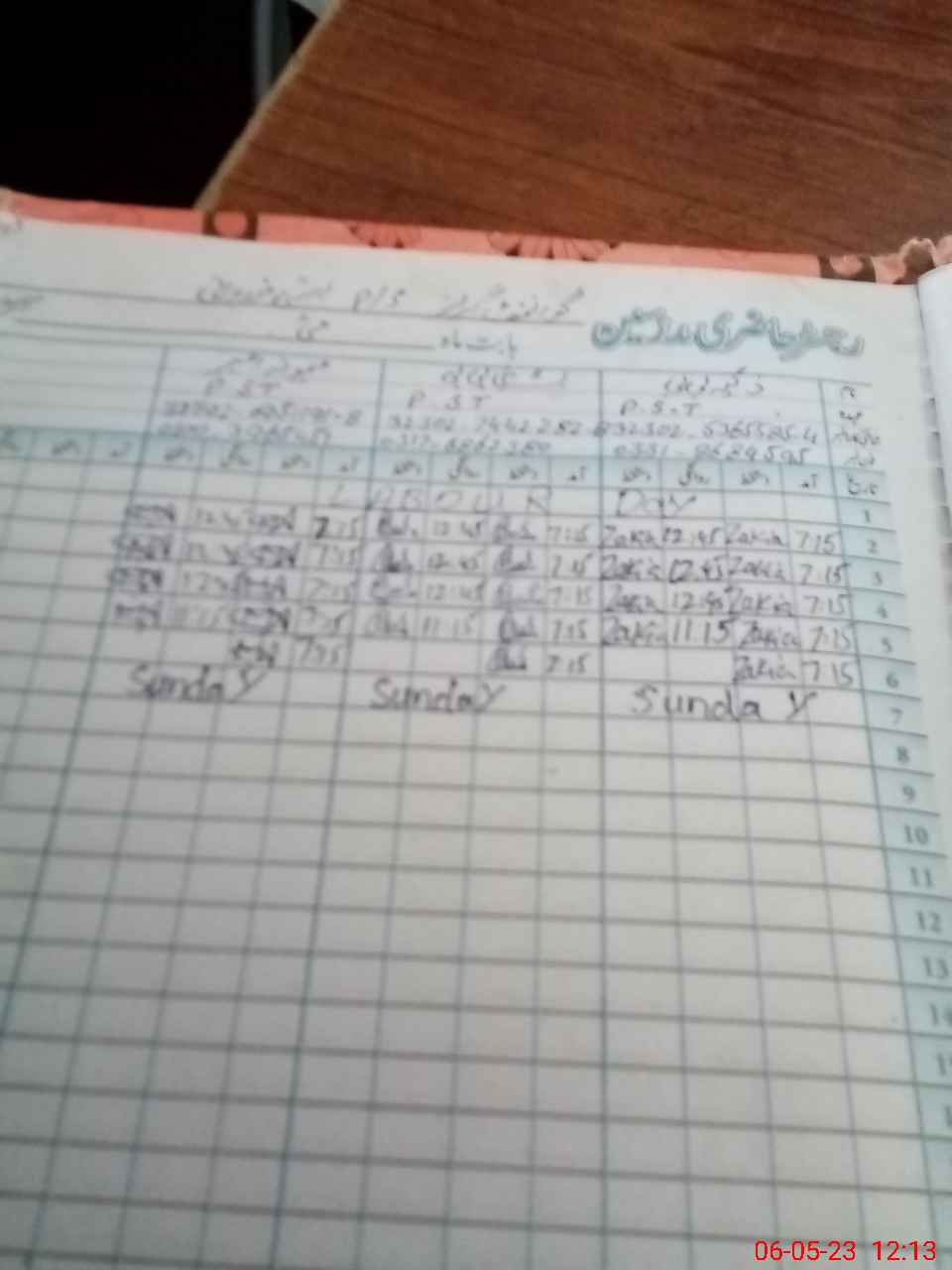 | CNIC | Full Name | Designation | R/C | Absence During Last Calender Month |