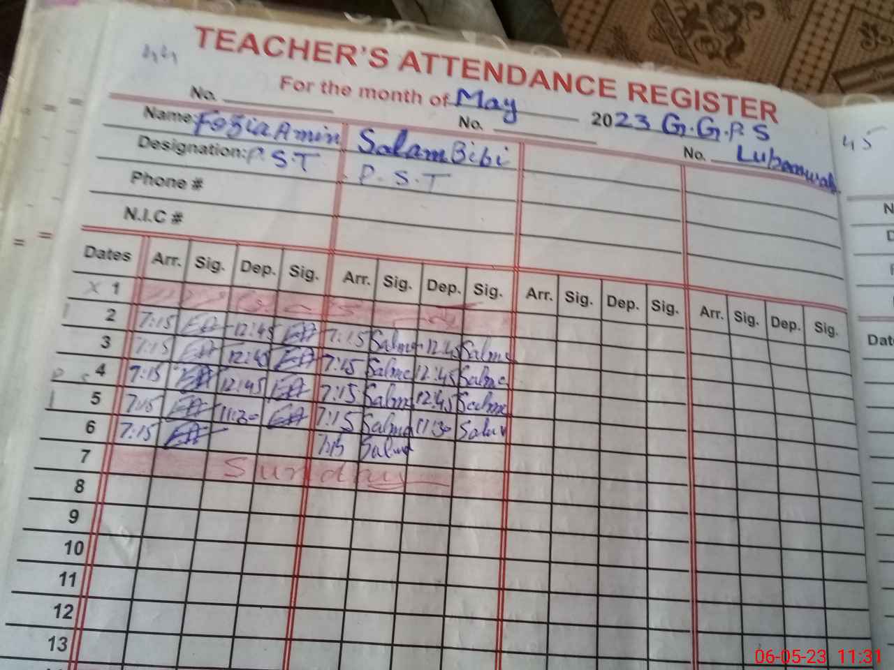 | Name: FO**** AM**** Designation: (School Headmaster's/Headmistress's) PST Phone/Cell Number: 03**** |