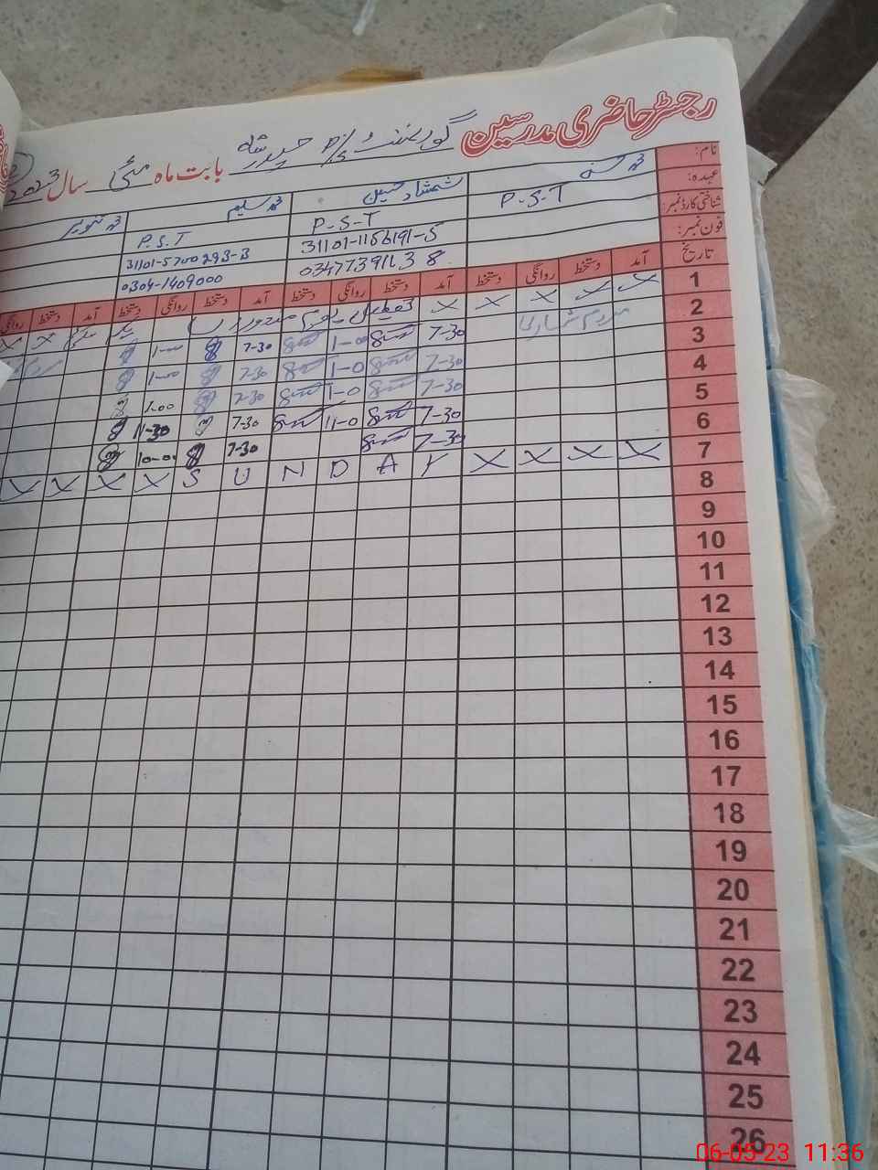 | Name: MU**** HA**** Designation: (School Headmaster's/Headmistress's) PST Phone/Cell Number: 03**** |