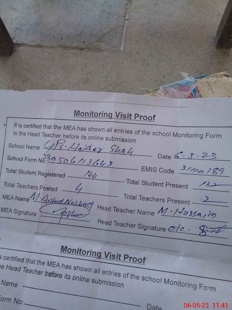 | EMIS Code: 31110189 | Name of School: GPS HAIDER SHAH | |||