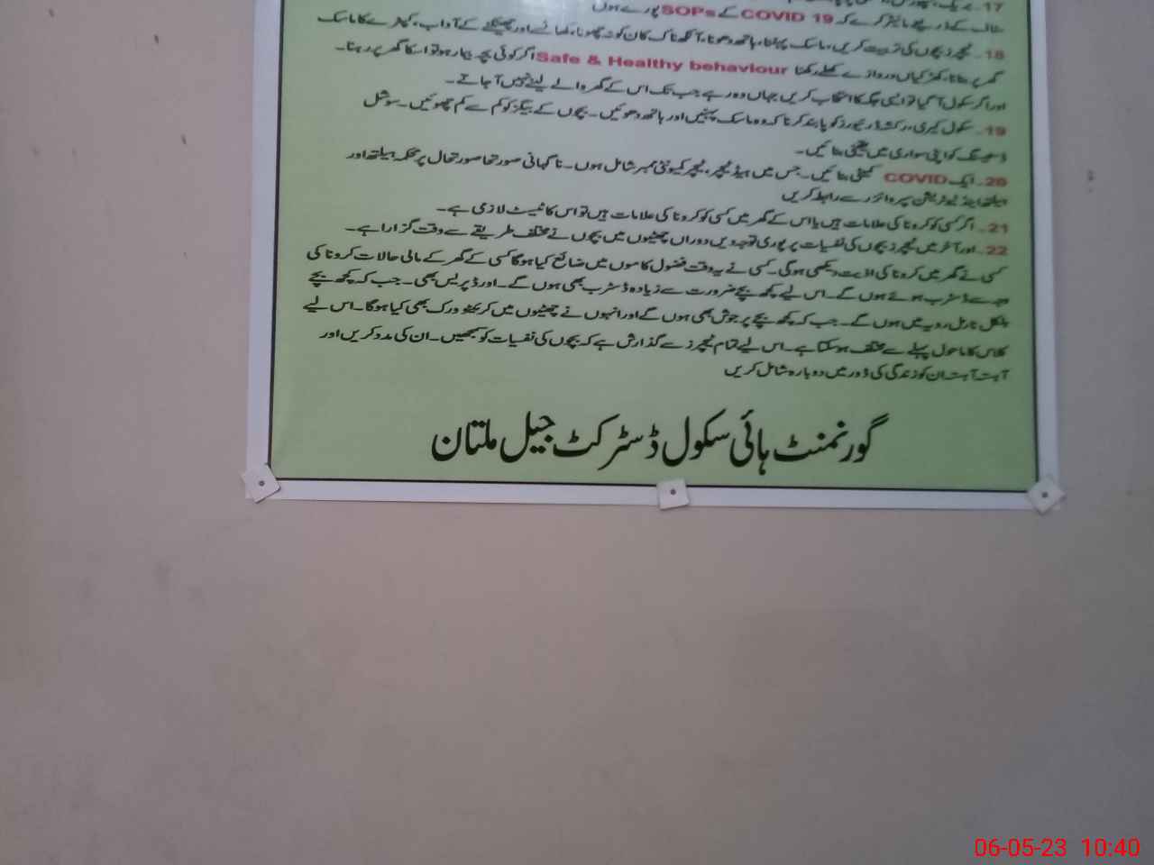 | EMIS Code: 36110047 | Name of School: GHS DISTRICT JAIL MULTAN | |||