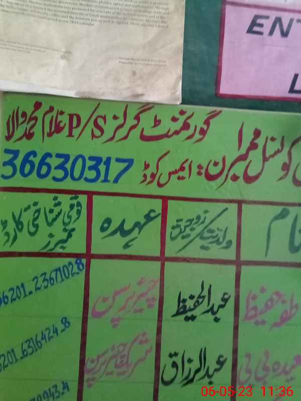 | EMIS Code: 36630317 | Name of School: GGPS GHULAM MUHAMMAD WALA | |||