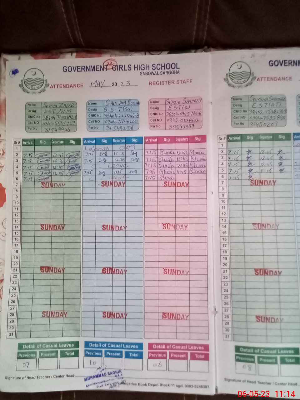 | Name: SA**** ZA**** Designation: (School Headmaster's/Headmistress's) SST Phone/Cell Number: 03**** |