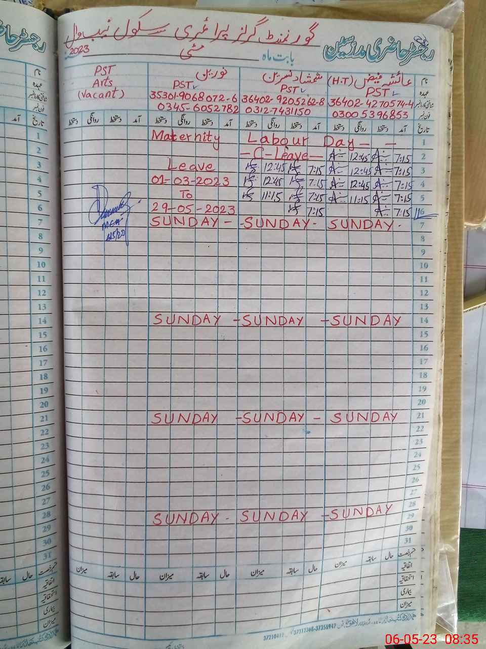 | 35**** | No**** | PST | Regular | 30 | 0 | 0 | 30 | 0 | 0 | 0 | 0 | 0 | Maternity |