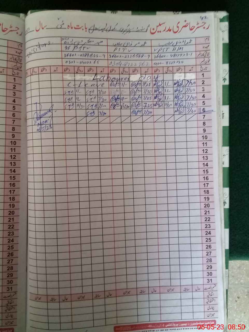 | Name: MAF**** Designation: (School Headmaster's/Headmistress's) PST Phone/Cell Number: 03**** |