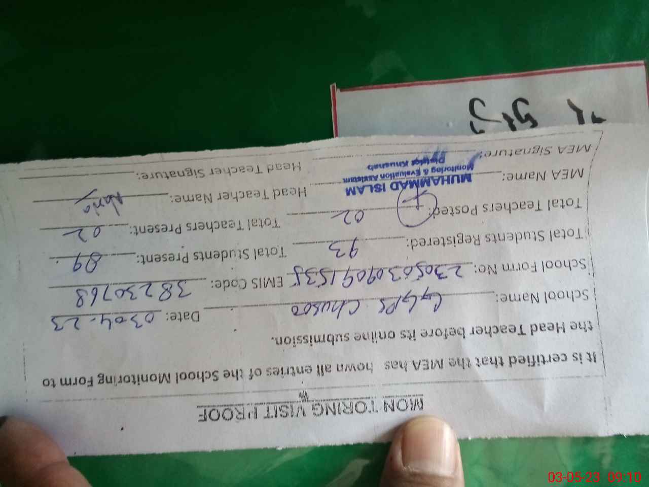 | Name: AS**** NO**** Designation: (School Headmaster's/Headmistress's) PST Phone/Cell Number: 03**** |