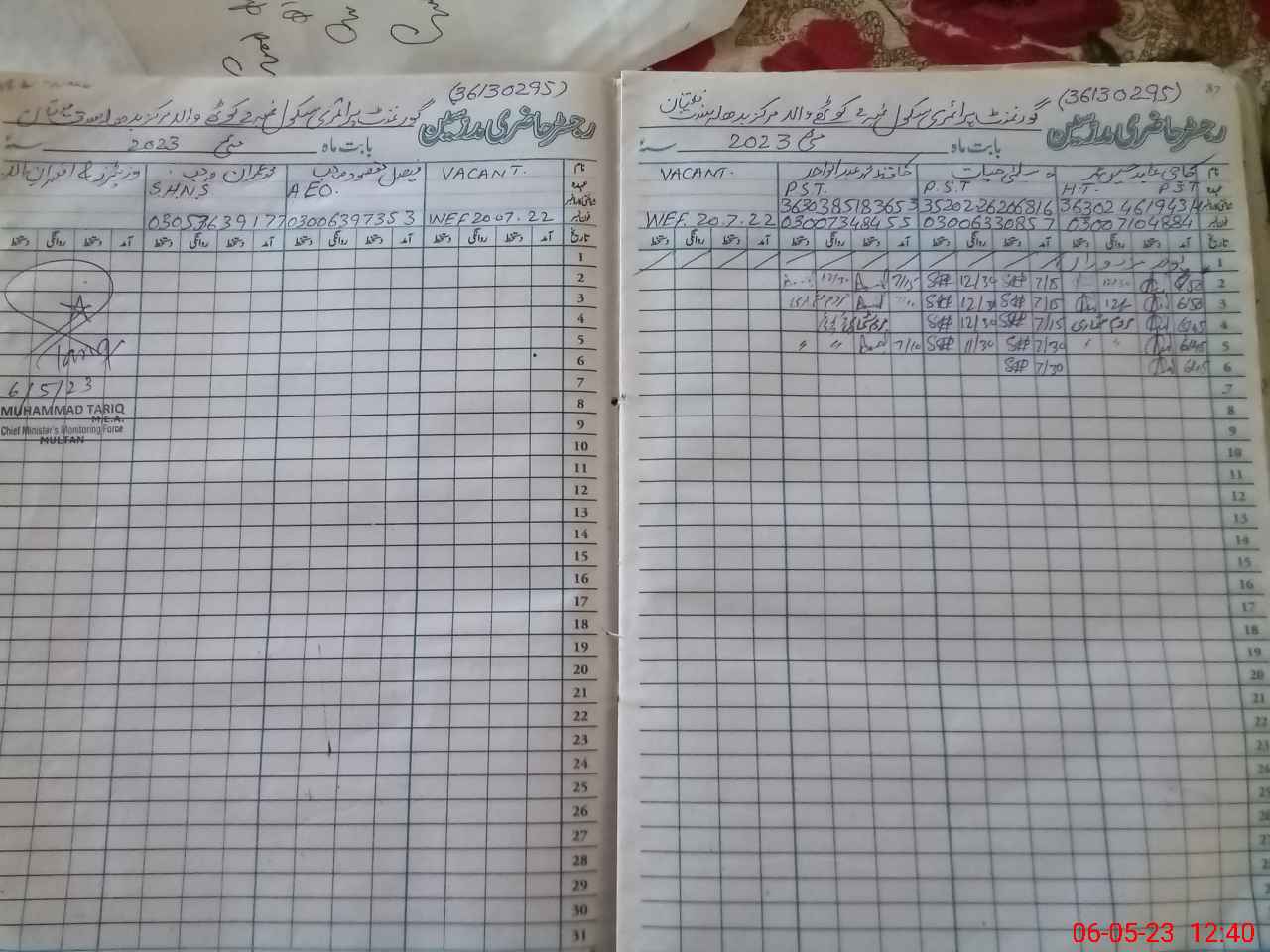 | Name: Ha**** MAb**** Wa**** Designation: (School Headmaster's/Headmistress's) HEADMASTER Phone/Cell Number: 03**** |