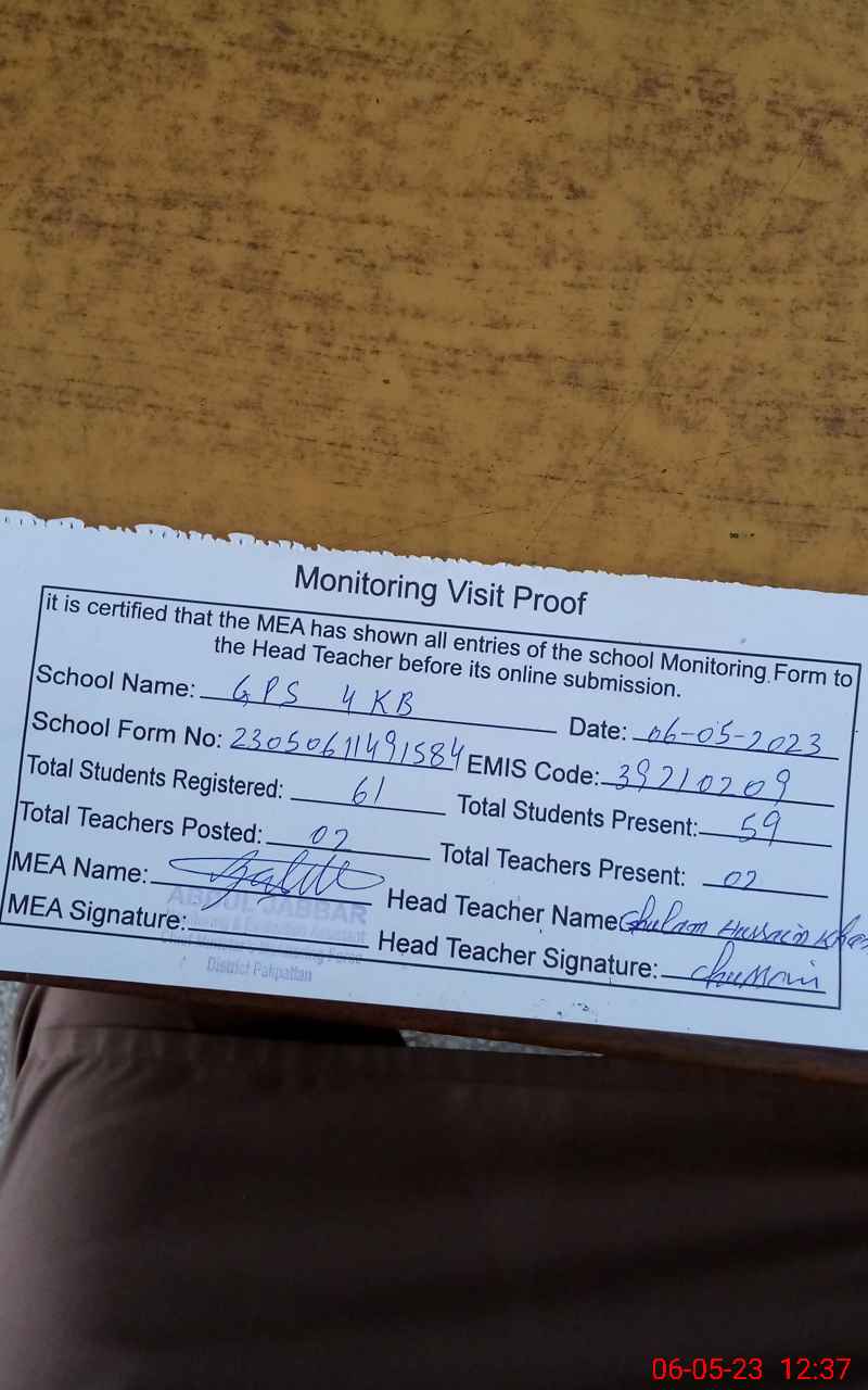 | EMIS Code: 39210209 | Name of School: GPS 4 KB PO PAKPATTAN | |||