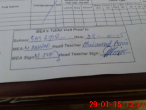 | Attendance Register | Head Teacher | MEA with School | Visit Proof |