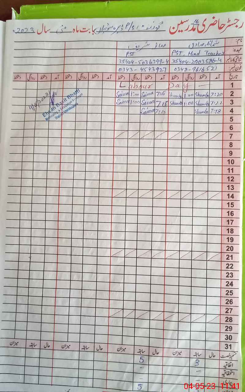 | Name: MU**** AB**** Designation: (School Headmaster's/Headmistress's) Pst Phone/Cell Number: 03**** |