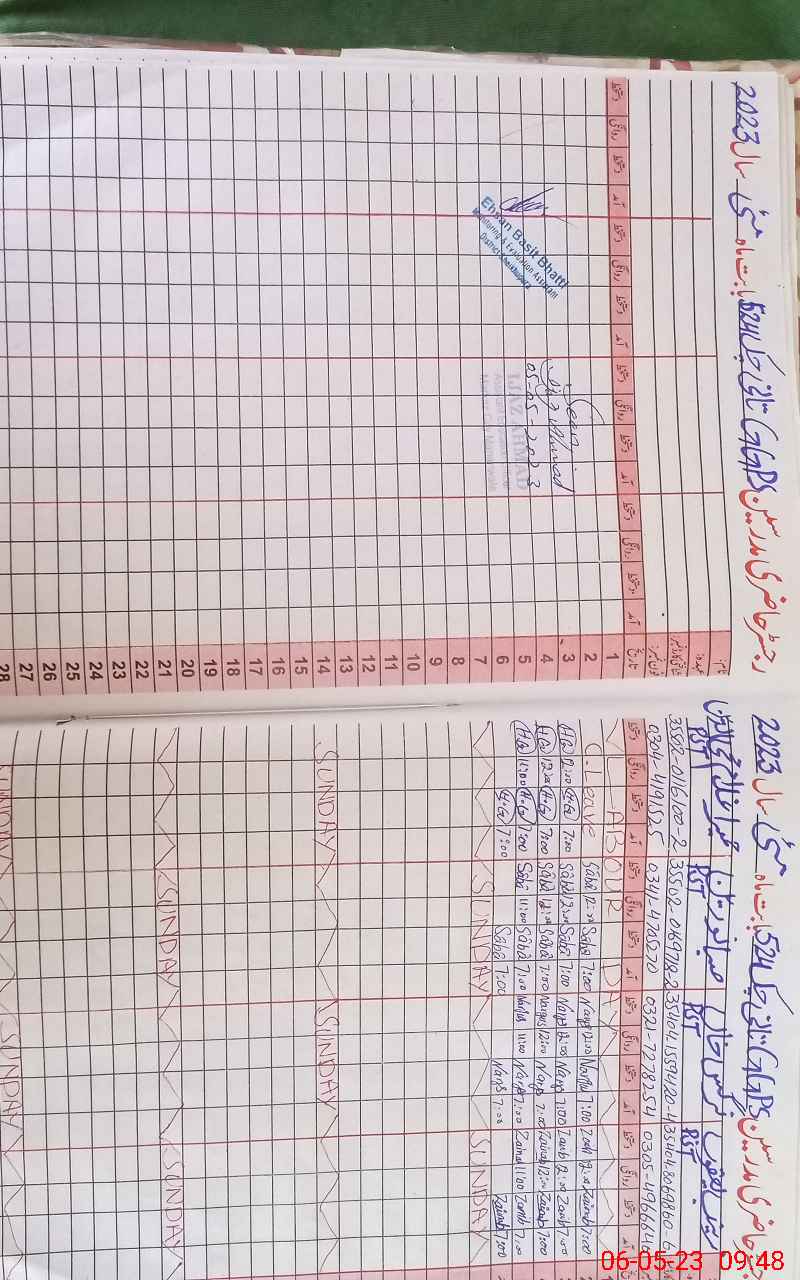 | CNIC | Full Name | Designation | R/C | Absence During Last Calender Month |