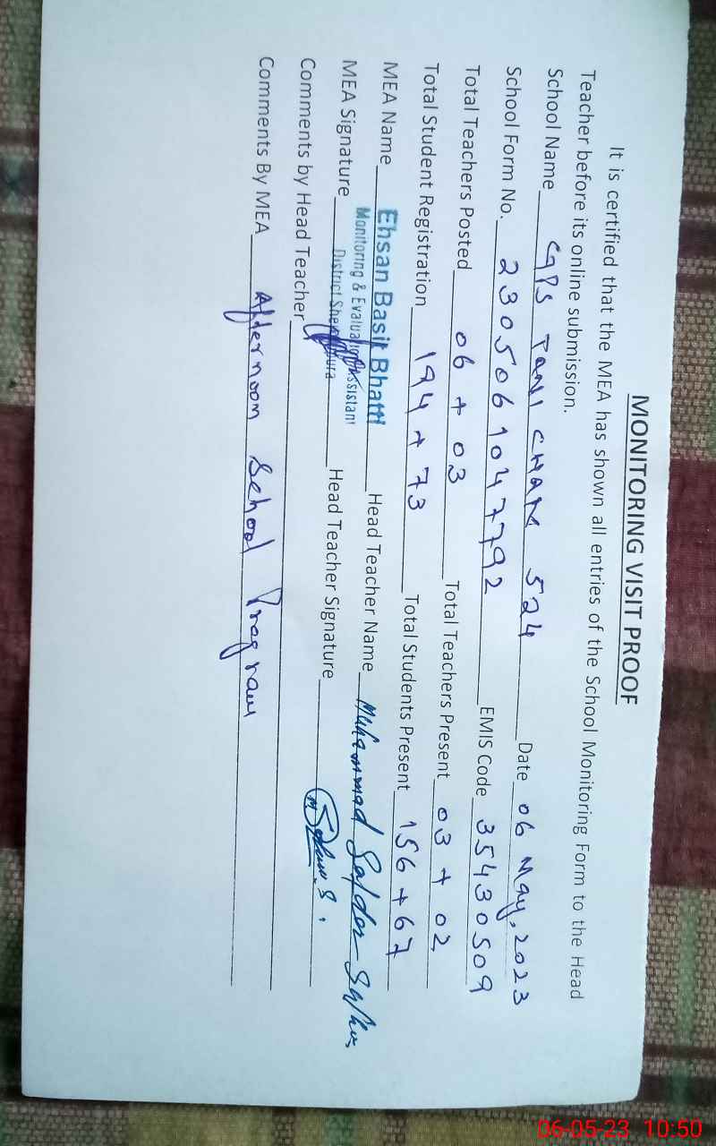| Attendance Register | Head Teacher | MEA with School | Visit Proof |
