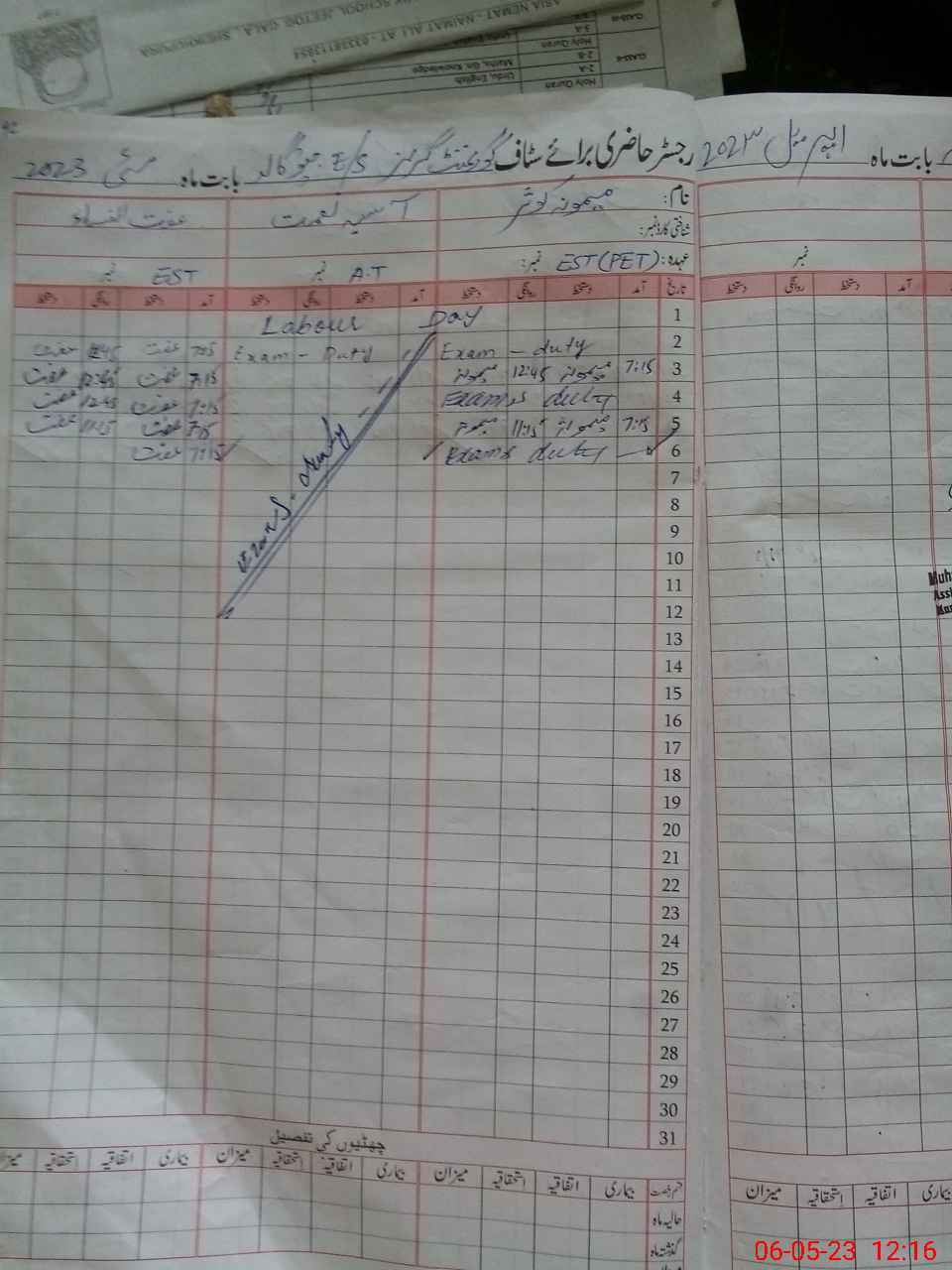 | 34**** | As**** Sy**** | PST | Regular | 0 | 0 | 0 | 0 | 0 | 0 | 0 | 0 | 0 | Exam Duty |