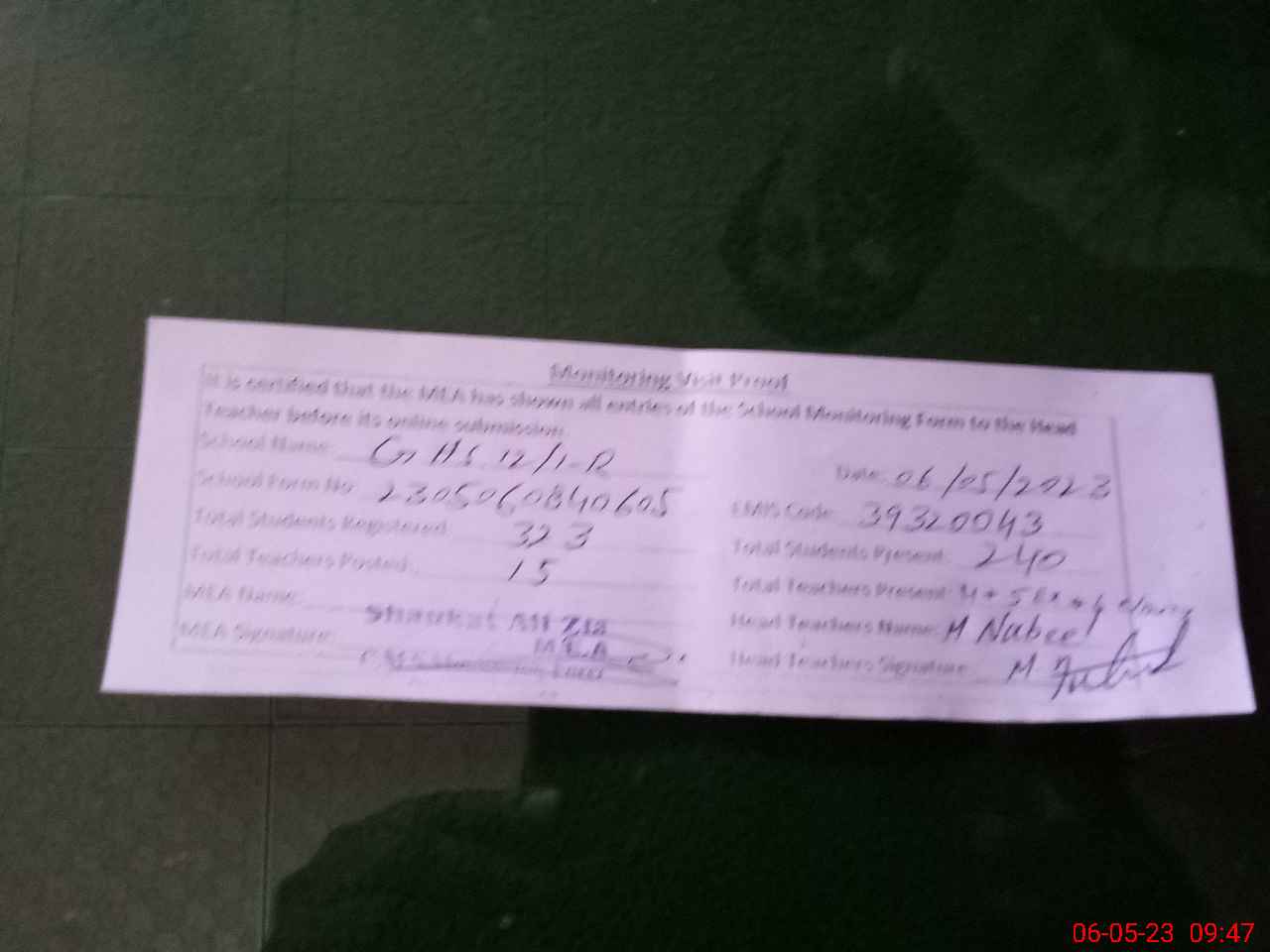 | EMIS Code: 39320043 | Name of School: GHS CHAK NO.12/1-R | |||