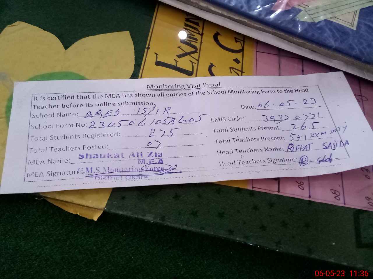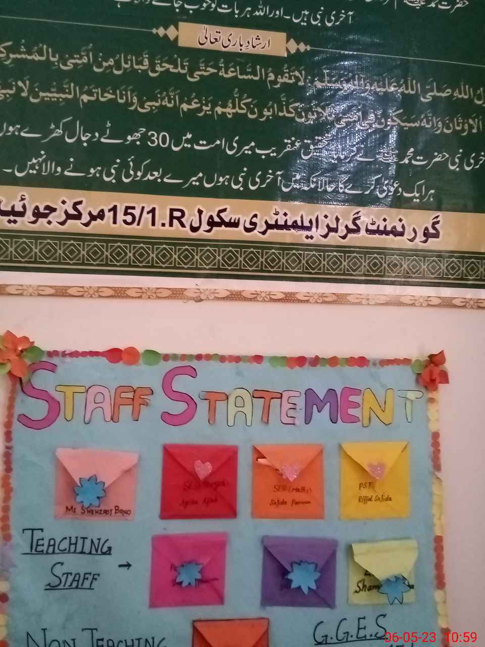 | EMIS Code: 39320771 | Name of School: GGES CHAK NO. 15/1-R | |||