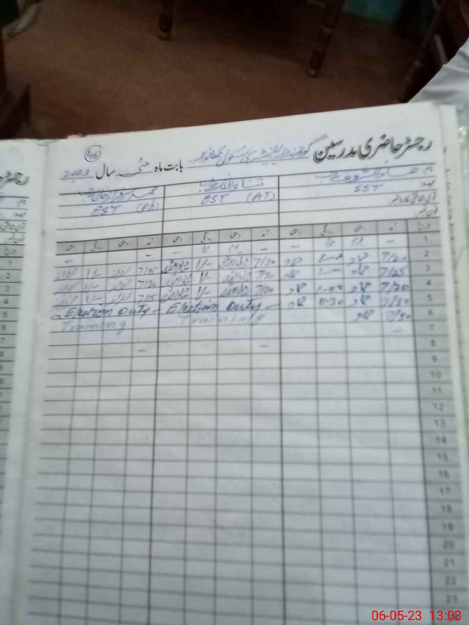 | 38**** | Mu**** Um**** Da**** | PST | Regular | 0 | 8 | 0 | 0 | 0 | 0 | 0 | 0 | 0 | Exam Duty |
