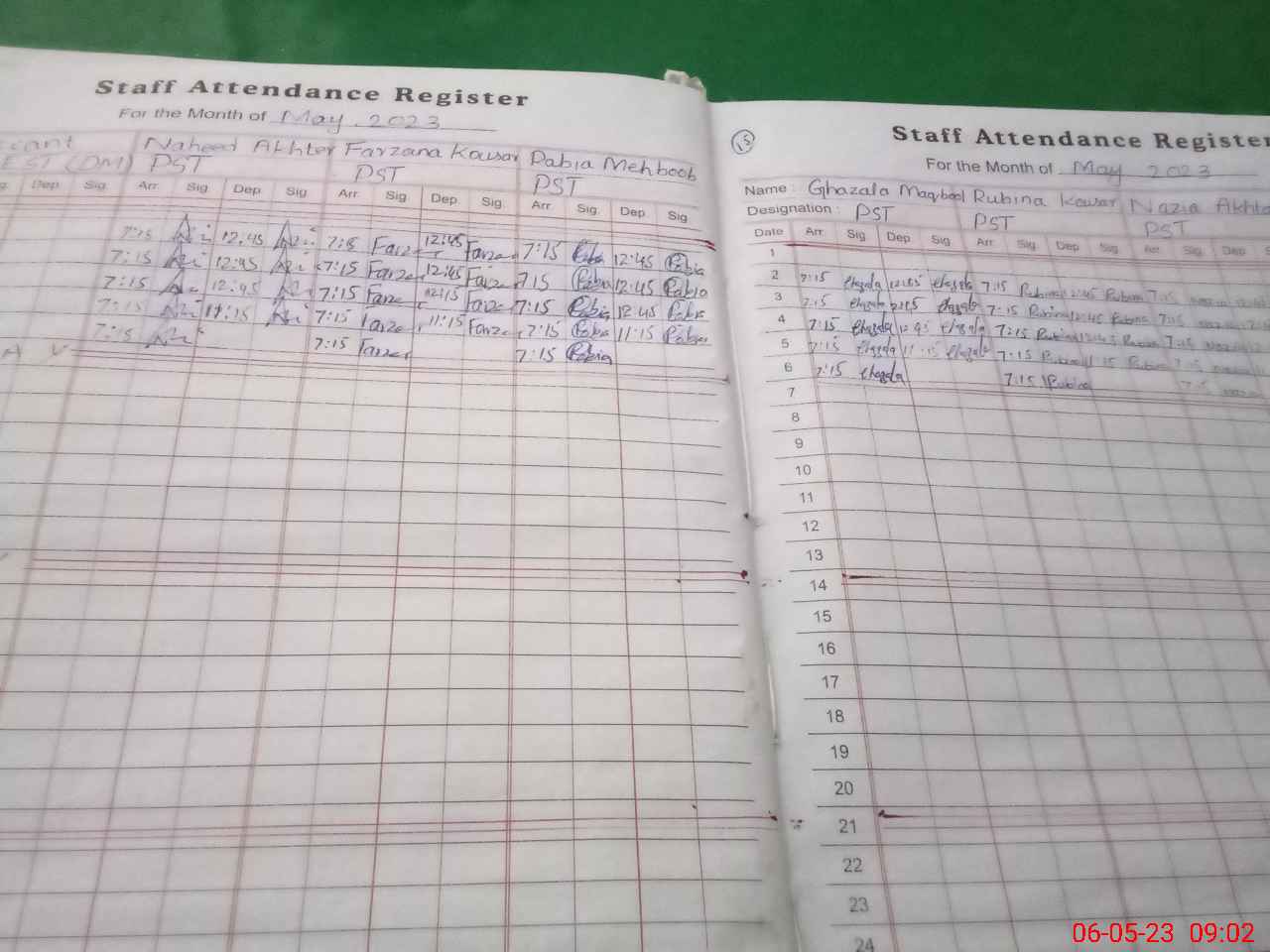 | Monitoring Date: 06-05-2023 | Start Time: 06-05-2023 08:36 AM | End Time: 06-05-2023 09:31 AM | Name of MEA: Sh**** Ra**** | |