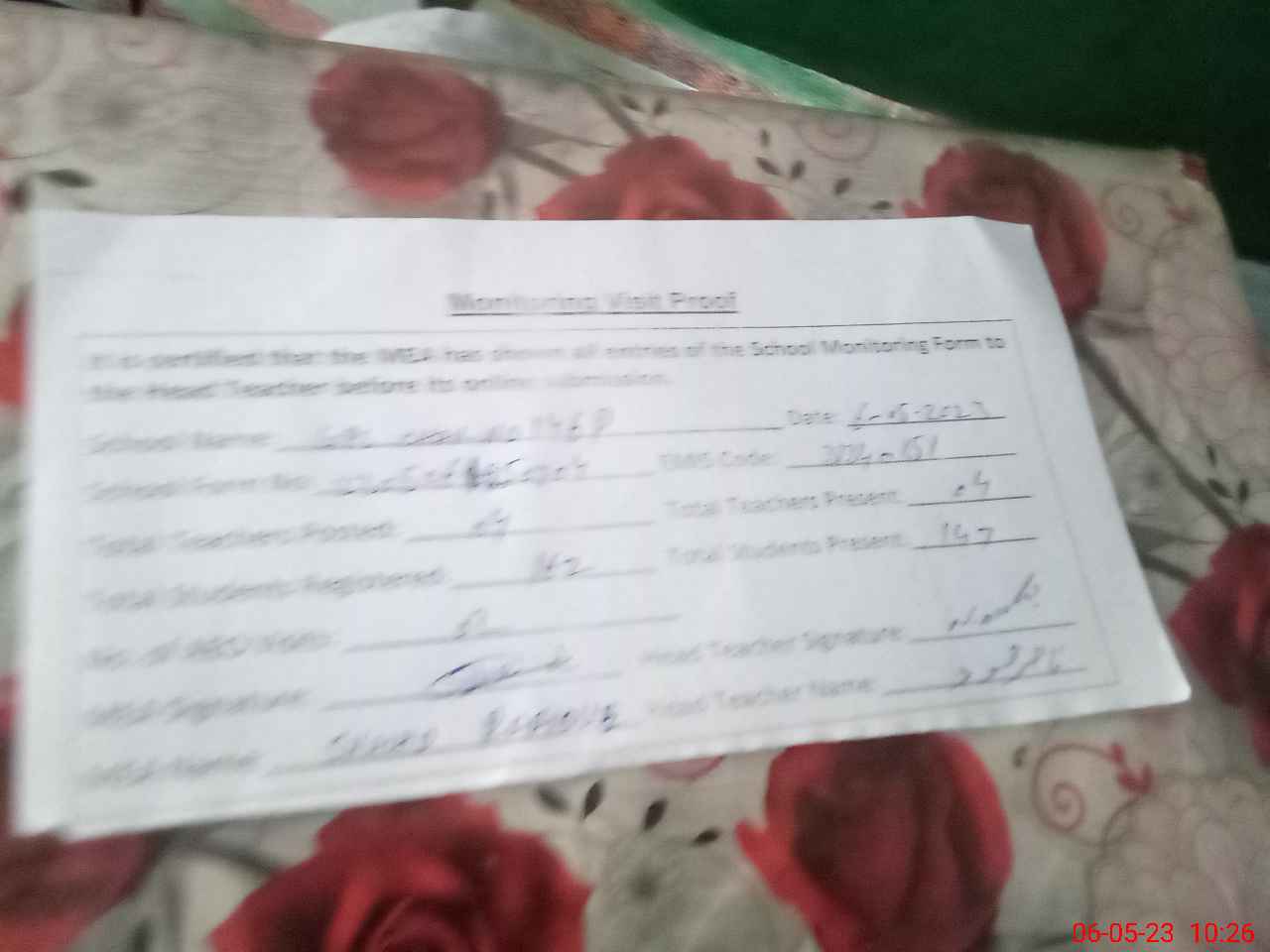 | Certified that this School was Inspected by the Undersigned MEA/DMO Today and the Information Stated Above is as Per Record. | |||||
