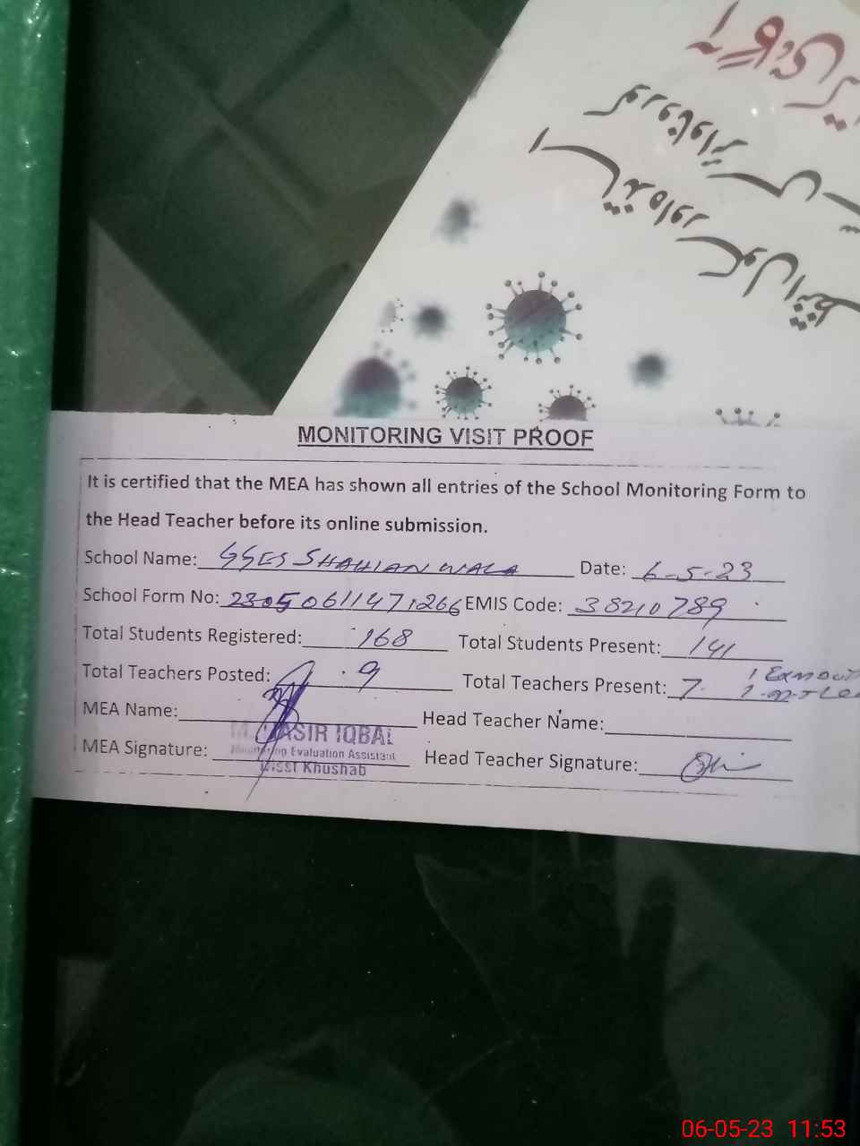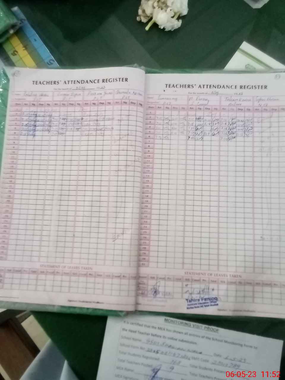 | Attendance Register | Head Teacher | MEA with School | Visit Proof |