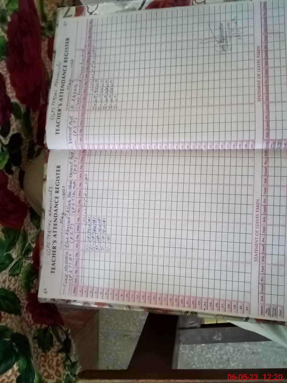 | Name: FI**** HU**** Designation: (School Headmaster's/Headmistress's) PST Phone/Cell Number: 03**** |