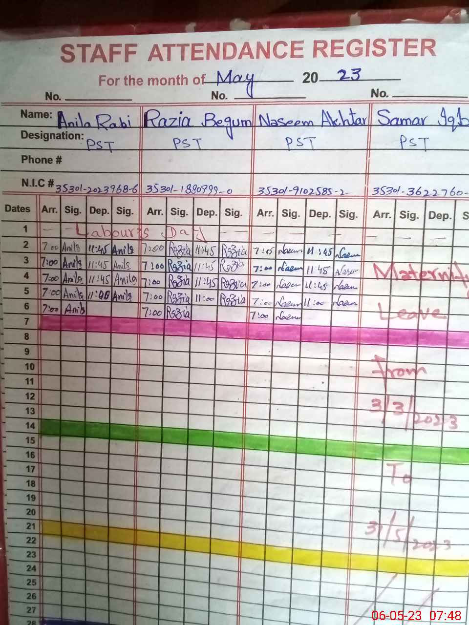 | 35**** | Sa**** Iq**** | ESE | Contract | 0 | 0 | 0 | 0 | 0 | 0 | 0 | 0 | 0 | Maternity |